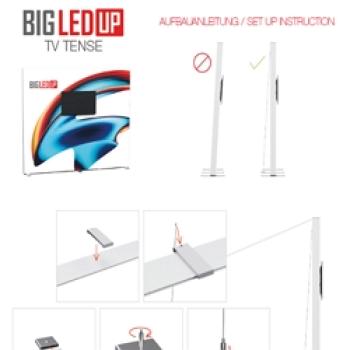Die Installation der BIG LEDUP® TV-Halterung ist unkompliziert und werkzeuglos. Die Halterung ist für Monitore mit den VESA-Standards 200 und 400 geeignet und kann einseitig an BIG LEDUP®-Systemen befestigt werden.