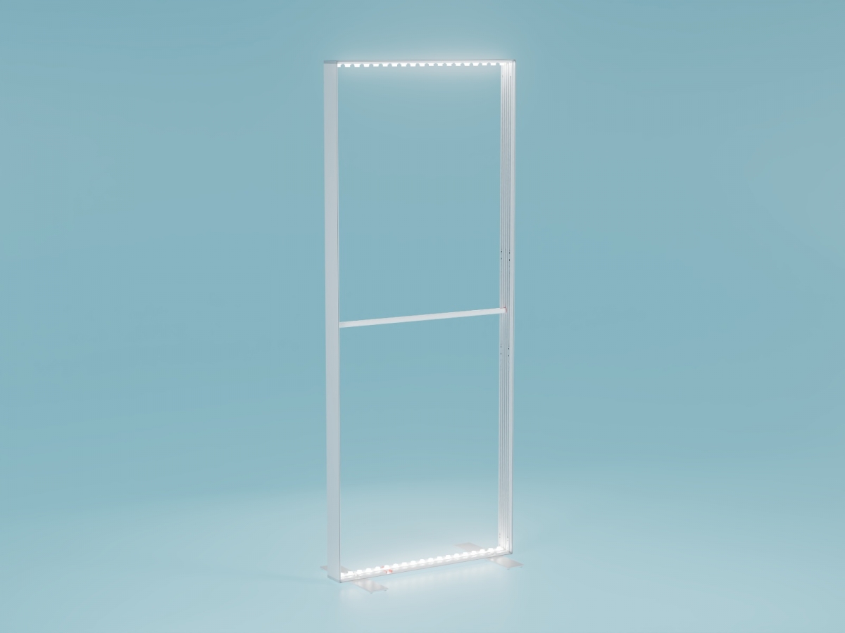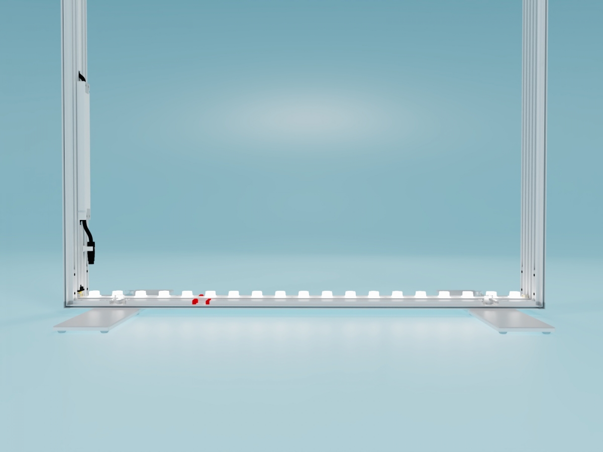 Die Stromübertragung erfolgt über eine integrierte Pogopin-Verbindung, die externe Kabel im Rahmeninneren überflüssig macht. Sobald die Rahmenelemente zusammengesteckt sind, wird die Stromverbindung automatisch hergestellt – sauber, sicher und zuverlässig.