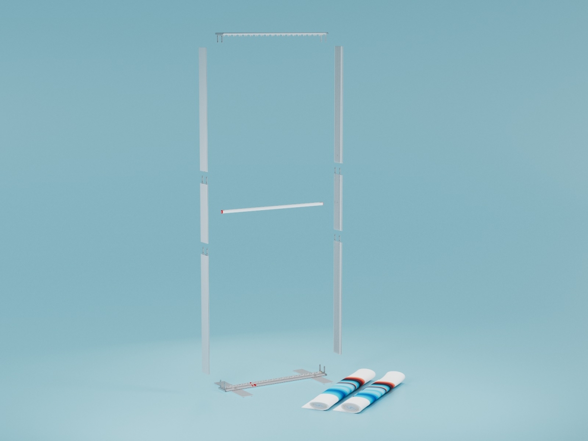 Für den Aufbau werden die einzelnen Komponenten der STELE direkt aus dem ABS-Hartschalenkoffer entnommen. Der Rahmen wird ohne Werkzeug zusammengebaut, anschließend an die Stromversorgung angeschlossen und mit der gewünschten Grafik bestückt. Die Montage gelingt auch ohne Vorkenntnisse innerhalb weniger Minuten.