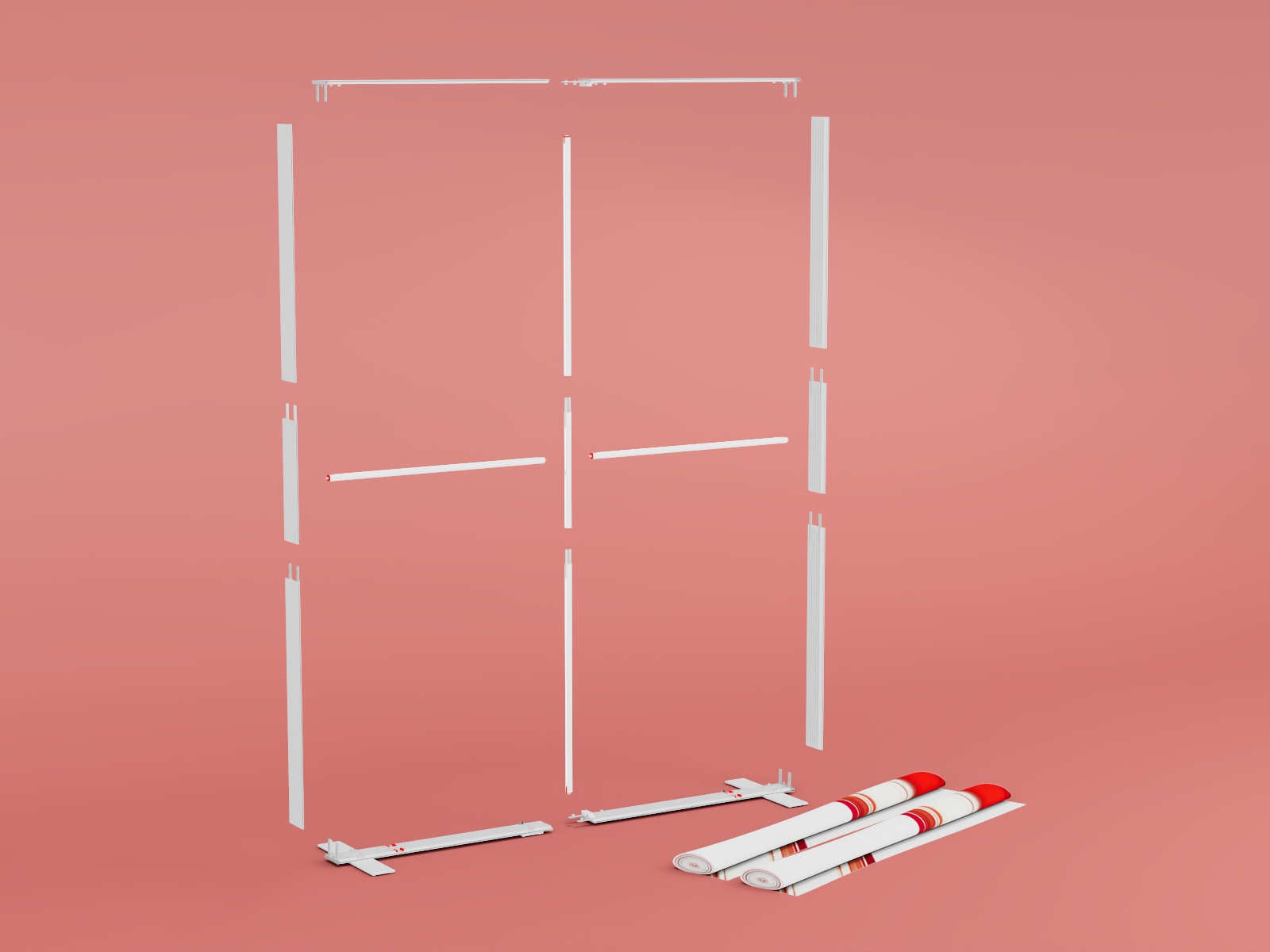Entnehmen Sie die Teile einfach aus dem handlichen ABS-Koffer, stecken Sie diese zusammen, befestigen Sie die Standfüße – und schon ist das Display einsatzbereit. Die Digitaldrucke mit angenähten Silikonlippen lassen sich mühelos anbringen, leicht handhaben und jederzeit eigenständig austauschen.