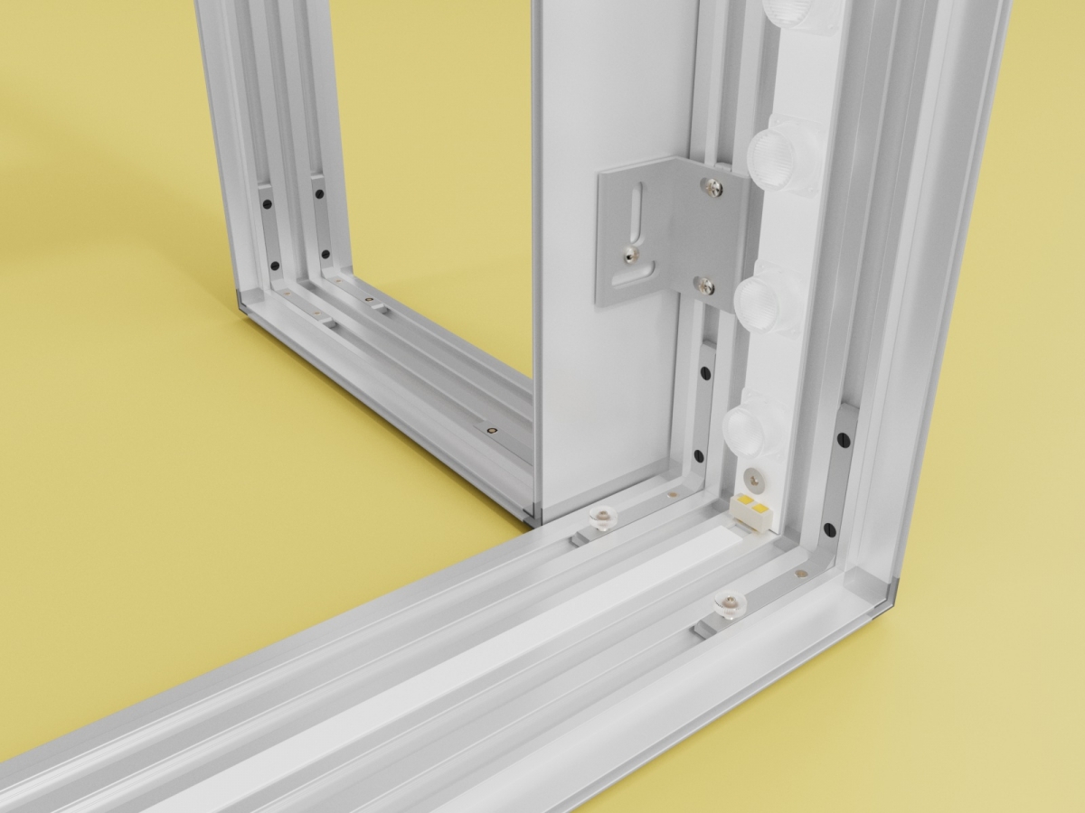 Diese Rahmen werden zerlegt in einem ABS-Transportkoffer geliefert. Das spart Transportkosten und Verpackungsmaterial. Rahmen zusammenbauen, Treiber und Kabel anschließen – plug in und fertig.