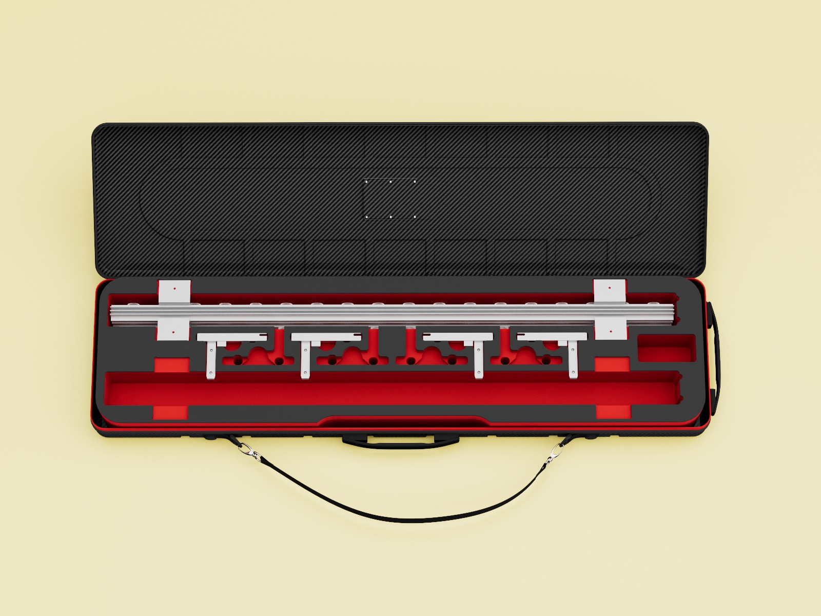 Alle Komponenten der Counter One Extension werden sicher und kompakt in einem robusten ABS-Koffer (120 x 21 x 40 cm, 8 kg)) verpackt. Dieser sorgt nicht nur für maximalen Schutz während des Transports, sondern ermöglicht auch eine einfache und platzsparende Lagerung.