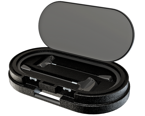Podium Case ist eine schlichte Messetheke und zugleich ein Transportkoffer, der viel Platz bietet.