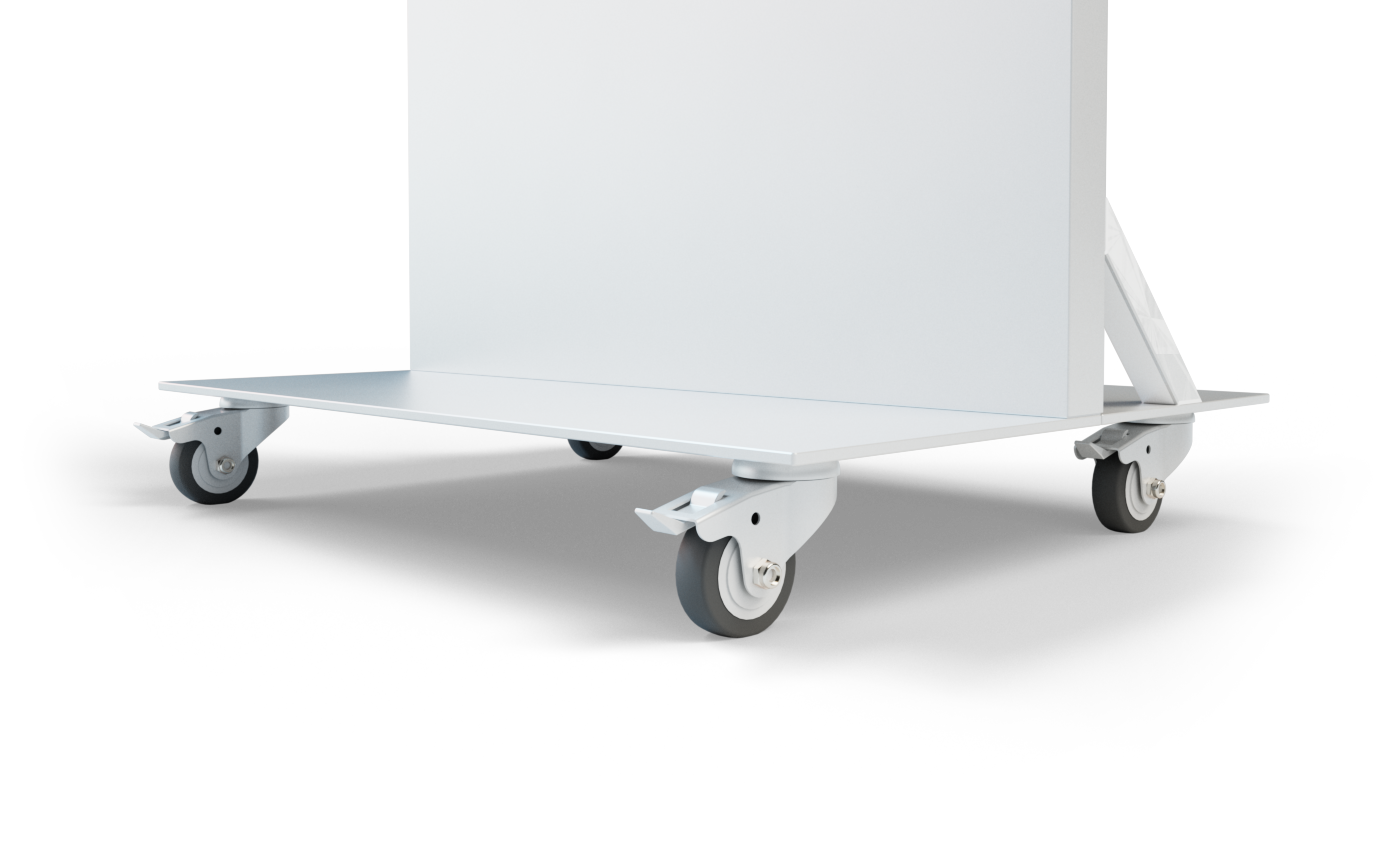 Optional gibt es die Bodenplatte auch mit Rollen. Die DIGIUP Stele ist in den Standardfarben Schwarz oder Weiß erhältlich.