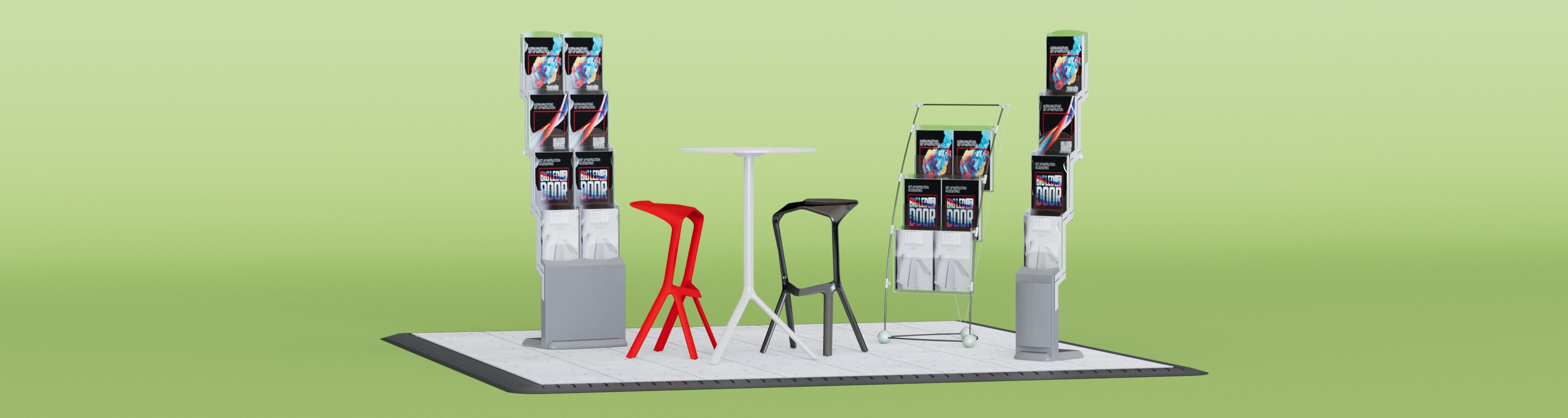 Ein Prospektständer für zahlreiche Werbeaktivitäten – Showrooms, Geschäfte, Promotions, Messen, Ausstellungen, Events usw.