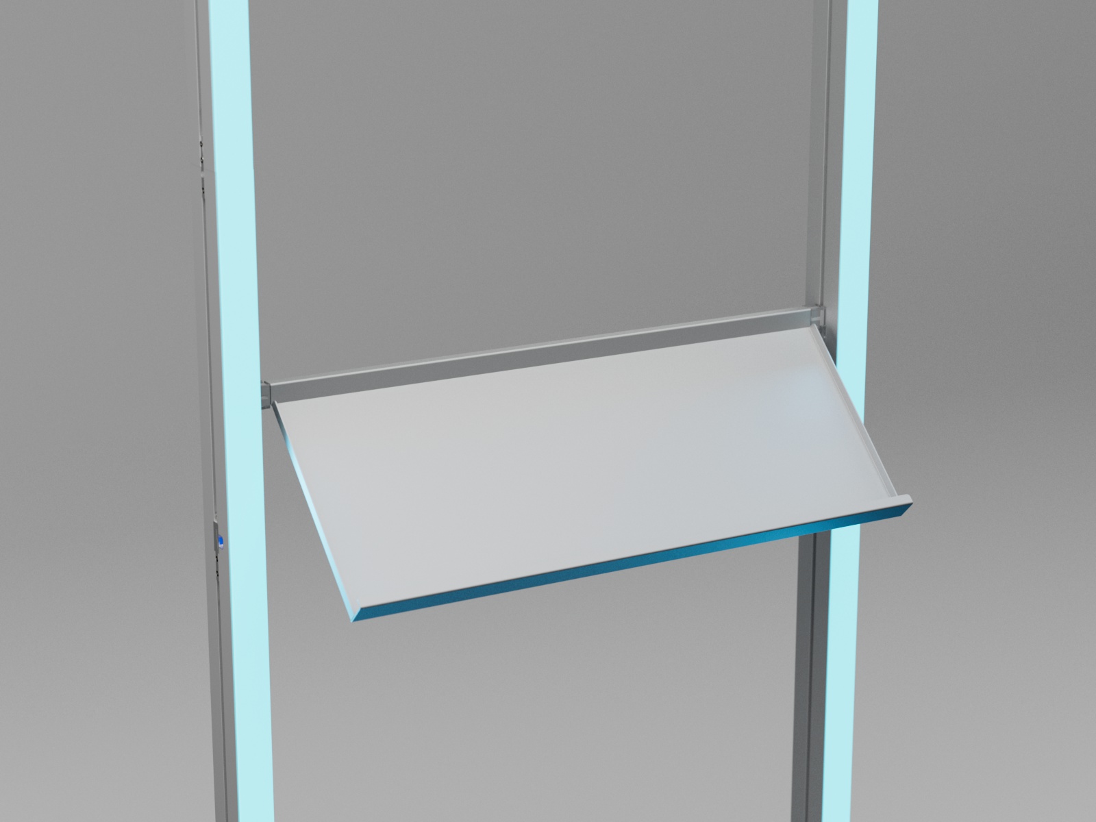 Wie alle LINEUP Komponenten sind auch die Schrägen Ablagen für eine einfache, werkzeuglose Montage konzipiert. Sie lassen sich über das modulare Stecksystem schnell und sicher an einem bestehenden LINEUP Rahmen befestigen – ganz ohne Werkzeug oder zusätzliches Equipment.