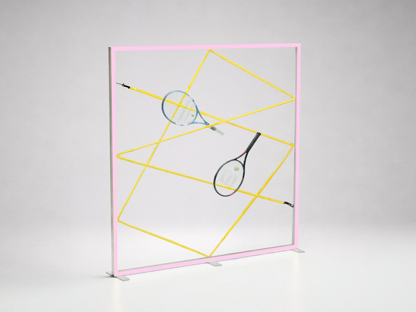 Das Seil wird am Rahmen eingehakt und gespannt, sodass sich Produkte einfach aufhängen und positionieren lassen. Erhältlich in 9 Farben - passend zur Marke oder als gezielter Akzent im Aufbau. Auch in Kombination mit Stoffgrafiken einsetzbar.