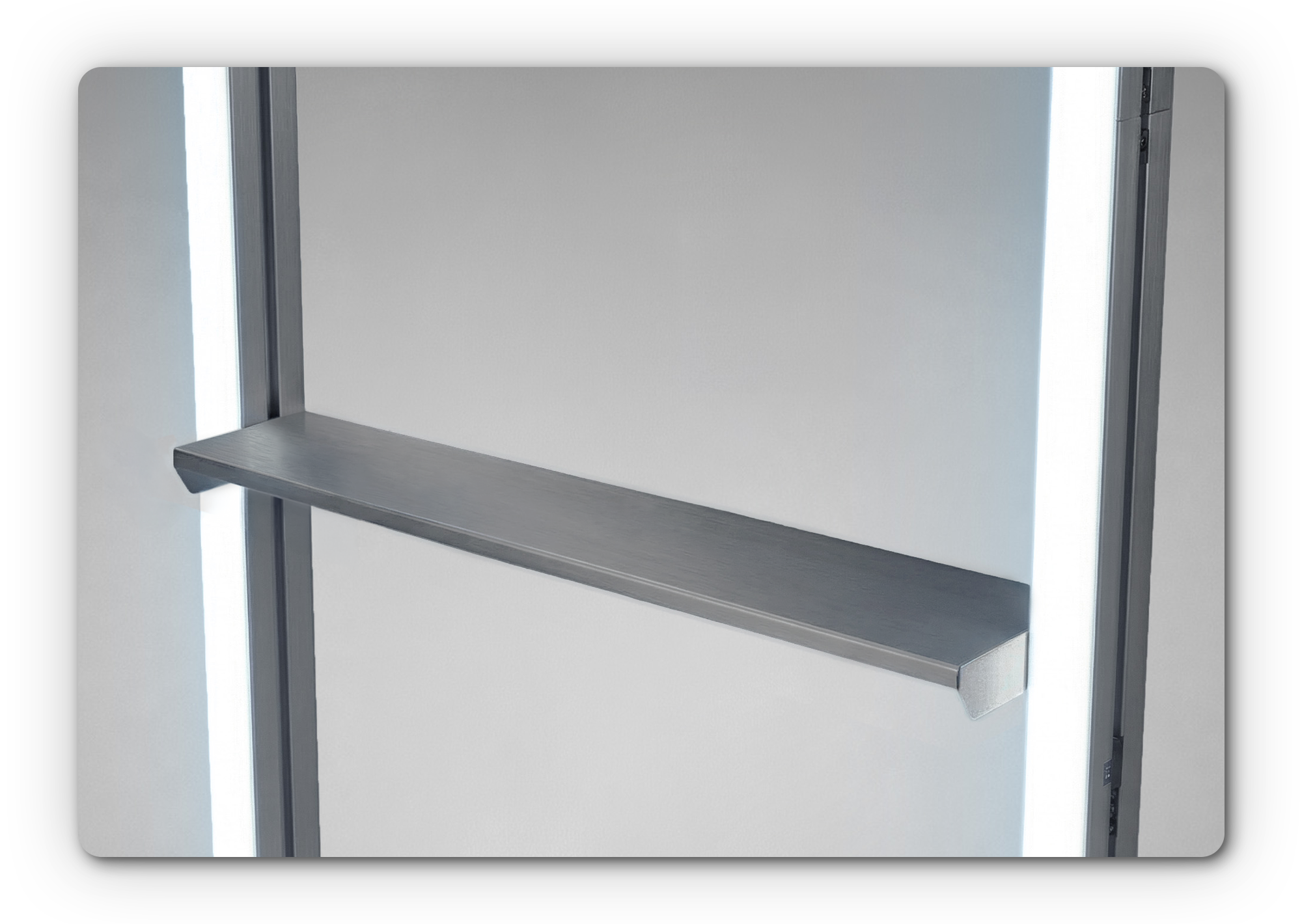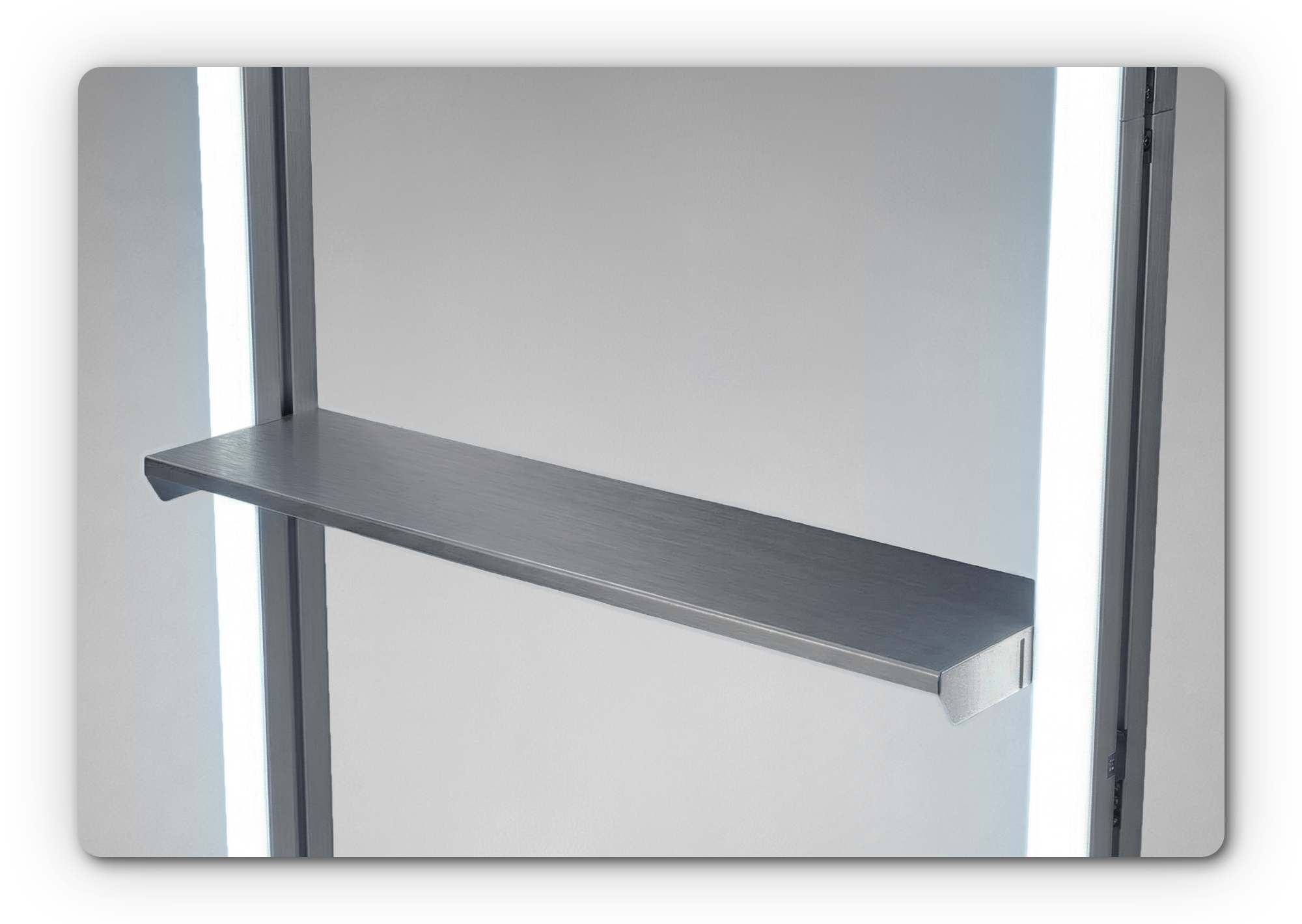 Die Ablage fügt sich nahtlos in den LINEUP Rahmen ein und bietet eine stabile, hochwertige Fläche für Präsentationen.
