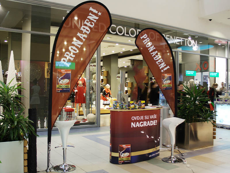 Formschöne Fahne für den Innen- und Außeneinsatz bei Events, Messen, POS-Aktionen, Promotions usw.