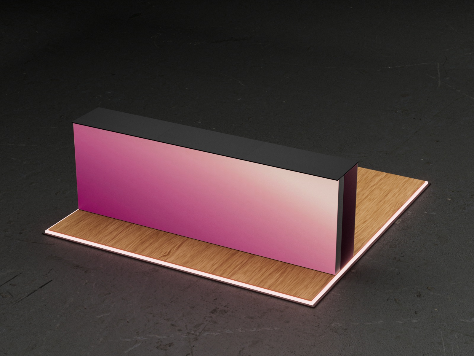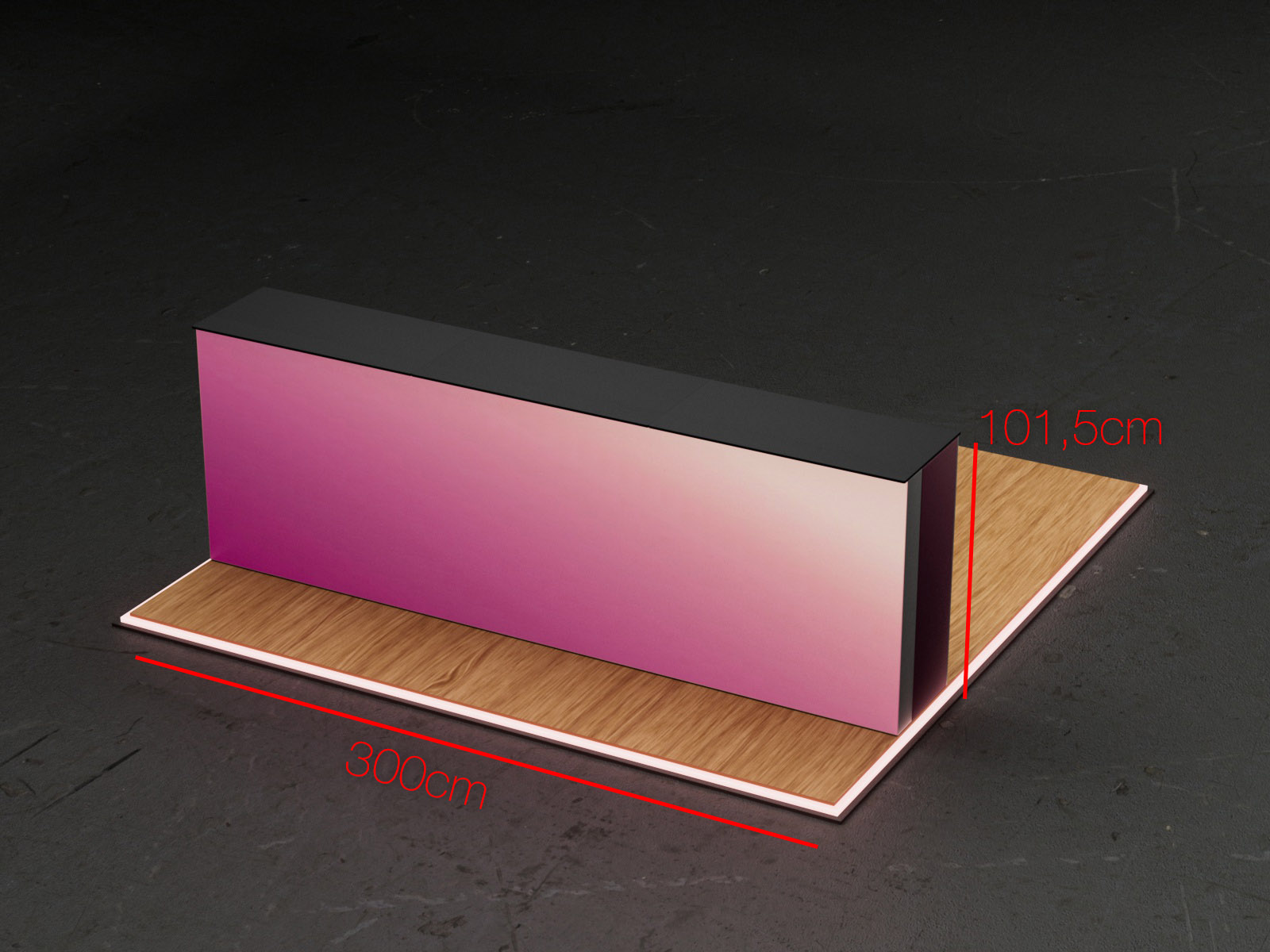Das COUNTER RICARDO Set besteht aus drei COUNTER ONE Modulen, die mithilfe eines breiten Extension Sets zu einer durchgehenden Einheit verbunden werden. Die gesamte Front wird mit nur einer einzigen Stoffgrafik bespannt.